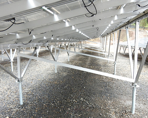 - 「アルミ製架台」や「スクリュー杭」など独自のオリジナル架台により、工期の大幅な短縮が可能です。
